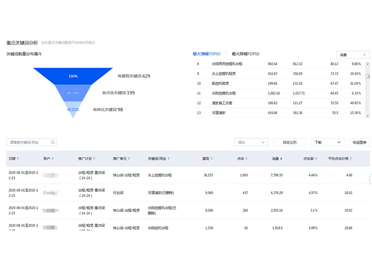 通過專業SEM分析師對競價后臺進行賬戶結構優化、篩選高質量關鍵詞等操作提升競價推廣效果。